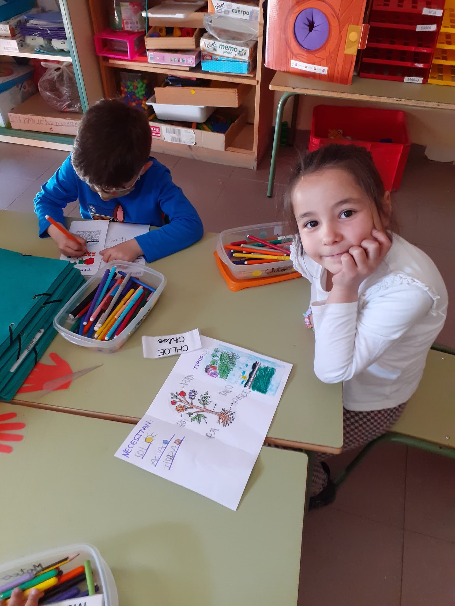 Bueno, y los alumnos de Educación Infantil, comienzan a preparar sus aulas con flores de colores para darle la bienvenida como se merece.